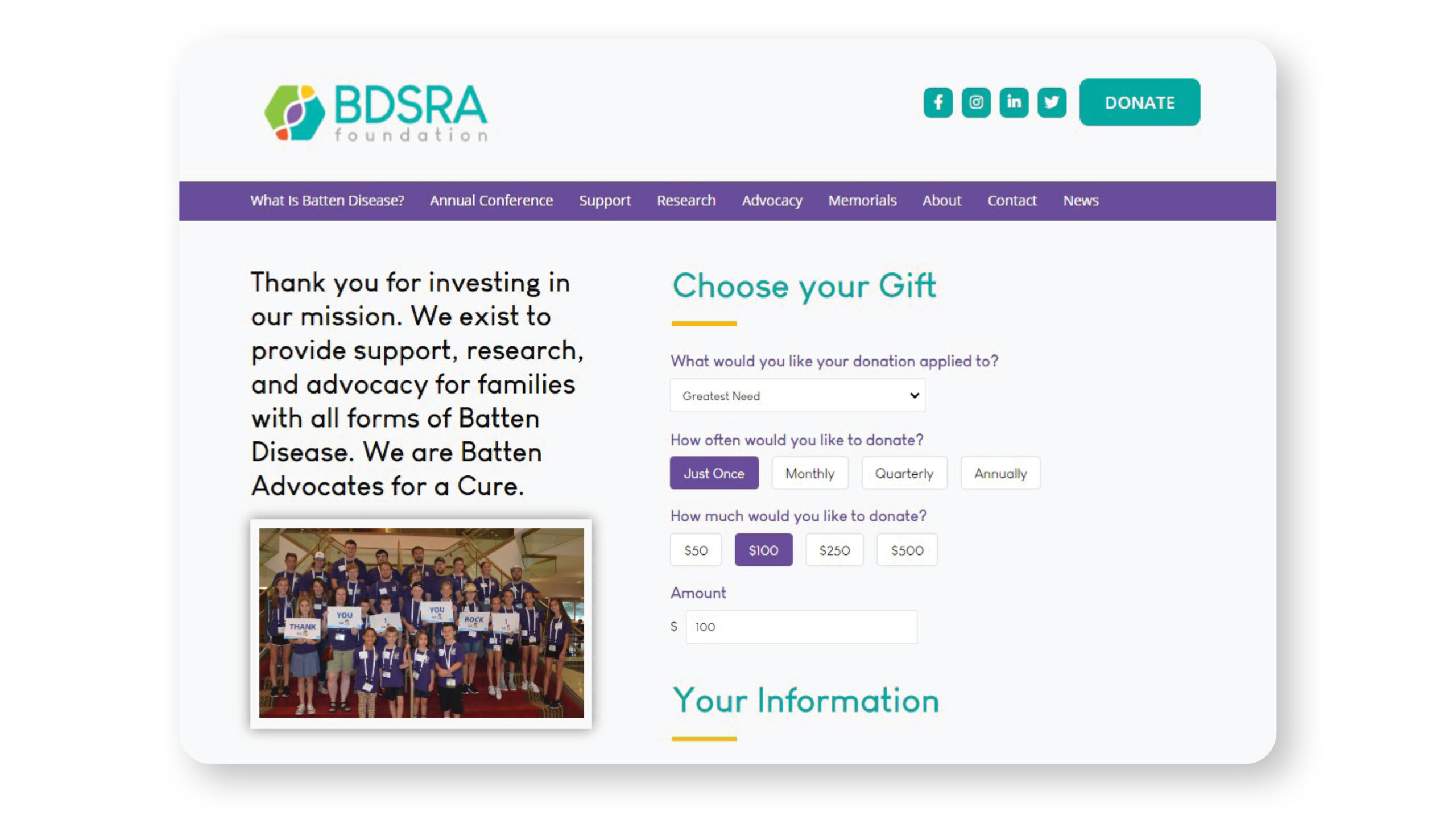 CharityEngine client BDSRA took advantage of the easy customization of our forms to hit a home run with their donation page. What do we like?